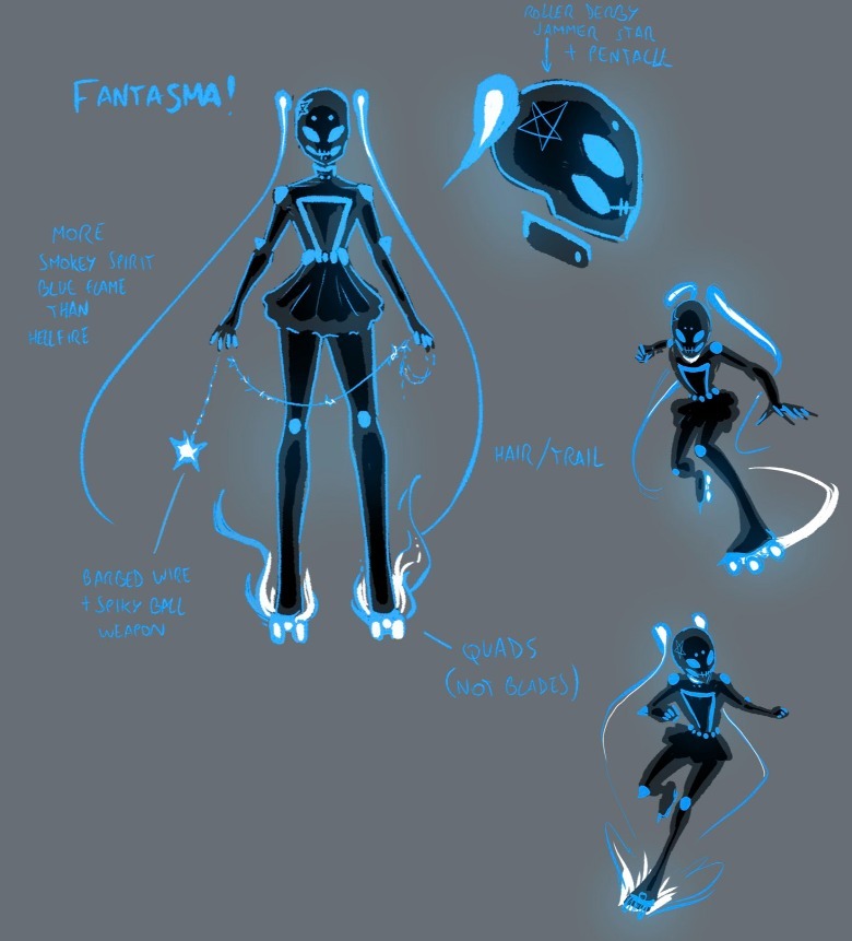 Another standout design comes from artist Luciano Vecchio, who gives Ghost-Rider a sidekick named Fantasma. The prompt Vecchio received for the character was "Roller Derby Ghost Rider Girl Sidekick," and it's hard to deny his final design captured precisely that. In the design sheet for Fantasma, she has blue spirit flames, a barbed wire and spiky ball weapon, long flowing hair (that trails her as she rides), and quad skates with a similar blue flame coming from them. Readers can see Fantasma in action in the first image in this article. The cover will release on "Ghost Rider" #19 in comic book stores on October 18.