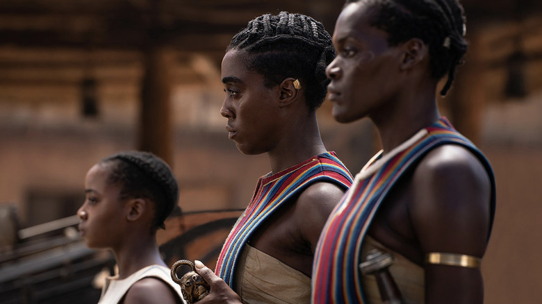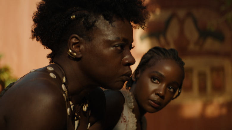 There is an element of class commentary in the film, where Viola Davis' General Nanisca has to contend with the beautiful, but condescendingly ambitious upper-class wife of King Ghezo, Shante (Jayme Lawson, "The Batman"). While Shante is one of many wives of Ghezo, she is also the one that seems to curry the most favor with the young king. She doesn't like Nanisca — the aristocratic Shante sees Nanisca as nothing more than a dirty, common soldier.