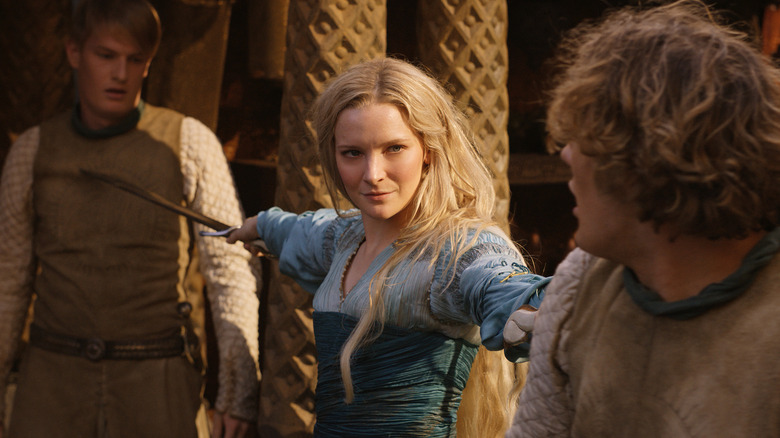 "The Lord of the Rings" fans know how difficult it is to kill a highly trained Elf, and we're assuming that any Elf who rides with Galadriel is probably a pretty outstanding soldier. However, the ice troll the company runs into manages to take down at least seven of the Elves before Galadriel arrives. One of her troops is about to meet a sticky end when Galadriel saves the day. She appears to have done this before, as one of the soldiers immediately kneels and sets his sword at an angle, allowing Galadriel to run up it (yes, the blade of the sword), catapulting herself directly at the creature.