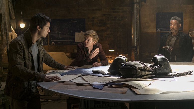 There's a big price to pay for getting through: they'll need to rely on the bitter, infection-riddled leader of a rogue group of insurgents that are lingering outside the wall, waiting for an opportunity to come in and wreck the place. And wreck it they do. With the help of Gally (Will Poulter), who's decided to be on Team Glader again, Thomas and friends infiltrate the wall through the tunnel system and make way to the WCKD lab building where Minho and others are being held. In return, Gally's boss Lawrence (Walton Goggins) basically gets the electronic keys to the city so he and his havoc-wreaking army can blow everything up just to spite those who've kept them out for so long. But skyscrapers and countless amounts of Last Citizens aren't the only ones lost in the fray.