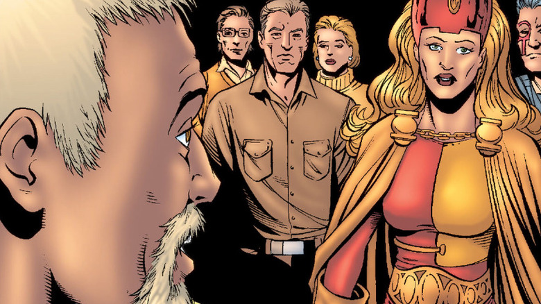Stargirl gets quite a pleasant surprise when she first enters the Amulet of Anubis in "JSA" #3 by James Robinson, David S. Goyer, and Stephen Sadowski: namely an idyllic realm where Nabu and every deceased incarnation of Doctor Fate reside, as well as fellow superhero Kid Eternity. It's not long before Hector Hall, then the new Doctor Fate, pays the world within the amulet a visit himself, which ends up serving as both a refuge and a place where he can ask his predecessors for help. He gets quite a shock, however, in the "Princes of Darkness" storyline, in which "Kent Nelson" claims he, Kid Eternity, and his fellow Fate alumni are mental constructs of Hector's, while Nabu claims he's the sole spirit actually within the amulet.
