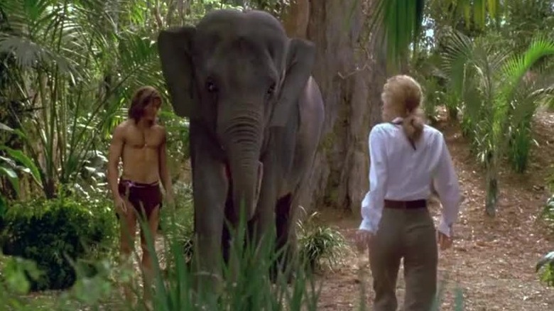 As Brendan Fraser prepares to add another noteworthy installment to his filmography in director Darren Aronofsky's "The Whale" — a film about an obese man named Charlie who struggles to reconnect with his family and take control of his life once again — he's taken some time to look back on his cinematic journey so far. In an interview with GQ, he broke down some of his most iconic roles, including that of George in "George of the Jungle." While discussing his experience on the 1997 family comedy, he touched on the difficulties the elephant Shep presented for both himself and the CGI team.