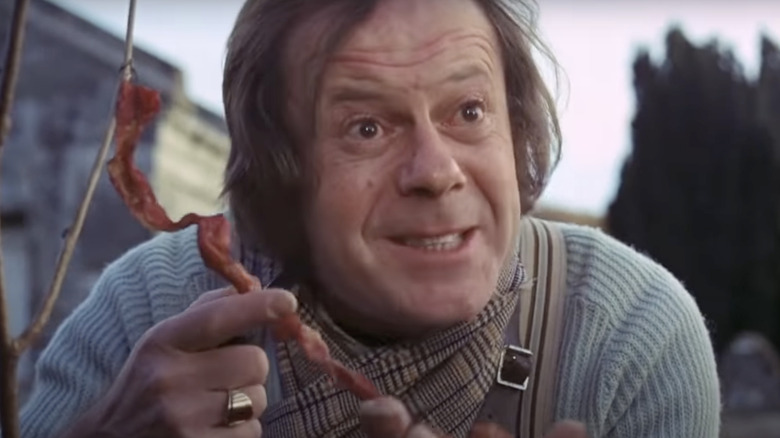Certain scenes in "The Wicker Man" are, intentionally or otherwise, laugh-out-loud funny. Others are downright bizarre. Some fall into another category — uncanny. As Howie makes his way around Summerisle, he stumbles into the remains of a churchyard in which symbols of Christianity have been removed or destroyed, causing him to fashion a makeshift cross. With the community worshiping primarily gods of nature in a religion based on pagan beliefs that emphasizes the need for birth, regeneration, and an ample harvest, it's hardly shocking that Howie would come across the strange tableau of a breastfeeding woman (Barbara Ann Brown) holding an egg in her left hand. The symbolism isn't hard to fathom. According to Art Dependence magazine, "The egg has always held particular symbolic significance, partly because it is a visual shorthand for new life and un-hatched potential. The egg brings hope and purity. It is a symbol of fertility and the circle of life."