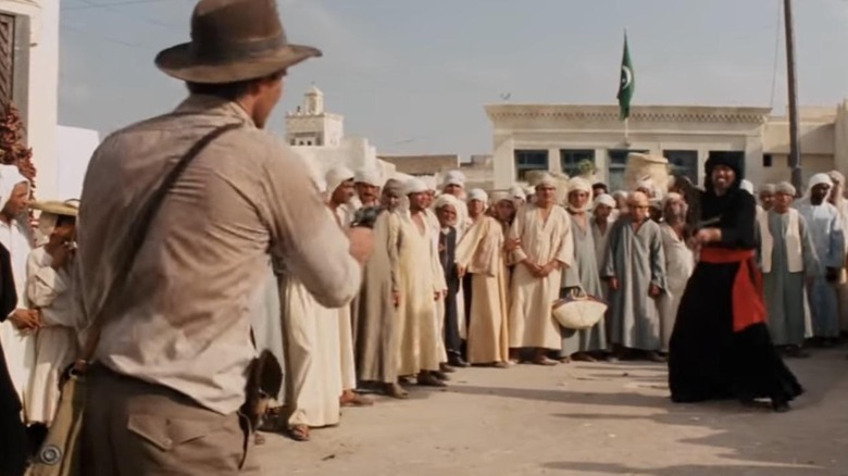 While Ford reprised his role as Indy in four additional movies (one of them being 2023's "The Dial of Destiny"), some of his coolest moments as the character came from "Raiders." For example, one moment in the film finds Indiana Jones and his sidekick/love interest Marion Ravenwood ambushed by Nazis in Cairo, Egypt. Attempting to rescue Marion, Jones is faced with a flamboyant mercenary brandishing a sword, whom he quickly dispatches with a gunshot in front of a spectating crowd.