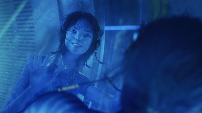 "Avatar: The Way of Water" introduces a new crop of characters to the ever-expanding world of Pandora. While much of the film does focus on the returning Jake Sully (Sam Worthington), Neytiri (Zoe Saldaña), and Colonel Miles Quaritch (Stephen Lang) from 2009's "Avatar," the majority of the James Cameron-directed sci-fi fantasy epic follows Sully's children and their new found friends from the ocean-dwelling Metkayina tribe. But, as interesting as it is to see how Sully's biological family — consisting of Lo'ak (Britain Dalton), Neteyam (Jamie Flatters), and Tuk (Trinity Jo-Li Bliss) — adapt to their new home, possibly the most intriguing of these new additions are not genetically linked to Sully's family whatsoever.