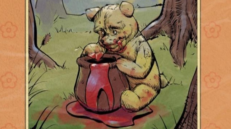 Disney tends to conjure up warm and fuzzy memories attached to animation and childhood innocence, but it's also a ruthless corporation known for its no-nonsense attitude towards copyright infringement. "Blood and Honey" is towing a line with what they're able to show in terms of the character of Pooh. The 1926 novel "Winnie the Pooh" by A.A. Milne entered the public domain as the movie was being made, and that means the filmmakers were able to use the character freely — as long as they only pulled aspects from that particular book and none of the Disney-owned story elements.