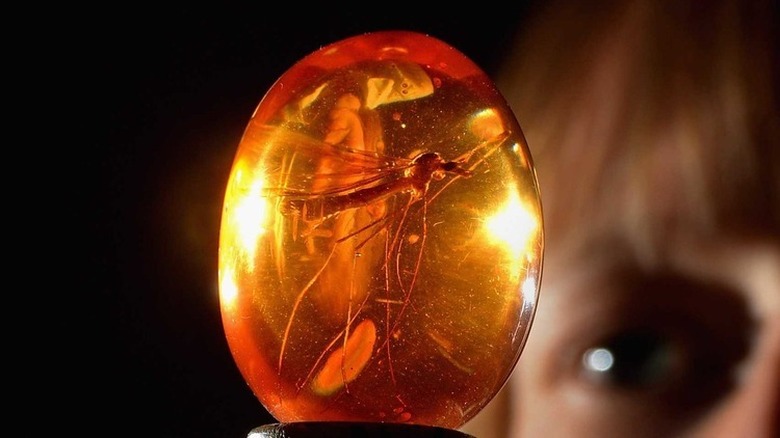 This scene isn't only significant because a genetically engineered version of the giganotosaurus returns to reclaim that title in "Jurassic World: Dominion," though. It links back to the scene in the first "Jurassic Park" film, when Alan, Ellie, and Ian watch a short film about a mosquito getting encased in amber and fossilized after drinking the blood of a dead T. rex. The prologue heavily suggests that it was this mosquito (or rather, one like it) that was later used by John Hammond and Sir Benjamin Lockwood's (James Cromwell) company InGen to extract dinosaur DNA and then create Rexy in the 1980s.