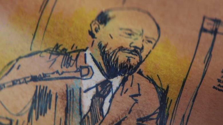 As the trailer begins, we meet two documentarians preparing to interview Michael in prison. Quick flashes show us excerpts from Loomis' notes, including his first-hand accounts of his early encounters with the young boy who had just murdered his sister Judith. We also see a courtroom sketch of Loomis testifying at Michael's trial, hinting at the events that immediately followed Halloween night 1978 in this new timeline. Hopefully, we'll get to find out how the rest of the doctor's life transpired in a world where he didn't have to fight his greatest nemesis over and over again. Appropriately, this montage is closed out by the very same sound of Loomis' gunshots that sent Michael over a balcony at the end of the original movie.