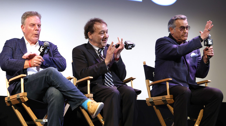 It's been an incredibly fun ride over the past four decades for the venerable "Evil Dead Rise" creative trio of Bruce Campbell, Sam Raimi, and Rob Tapert, who in 1981 released what soon would become a modern horror film classic with "The Evil Dead." Directed by Raimi and produced by Tapert, "The Evil Dead" opened the book (of the dead) on the Necronomicon, which unleashed an invisible demonic force that would possess its victims and turn them into wicked, zombie-like beings who came to be known as "Deadites." It's also where fans met a resourceful everyman, Ash Williams (Campbell), who is destined to become a chainsaw-wielding, boomstick-slinging Deadite slayer, delivering classic quips like "Groovy" and "Come get some."