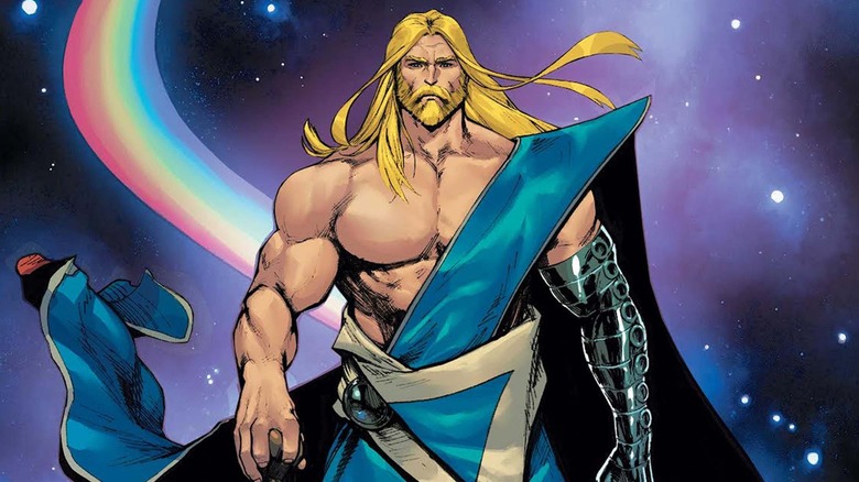 Many other Hellfire Gala costumes will appear on covers throughout the month. Black Cat and Mary Jane Watson get stunning, skin-tight dresses in a cover from David Nakayama that will appear on "Amazing Spider-Man' #26. The issue releases on July 12. Meanwhile, Vision, who will join the new Avengers roster, gets a somewhat simple and long-flowing new look from David Baldeon for the cover of July 26's "Avengers" #3, as the android wears a massive gold cape that wraps around his arms. Even Thor gets a high-fashion costume, as he can be seen in a layered new outfit in cover art by David Marquez for "Thor Annual" #1, which features the shoeless hero walking across the rainbow bridge. The issue will come out on July 5.