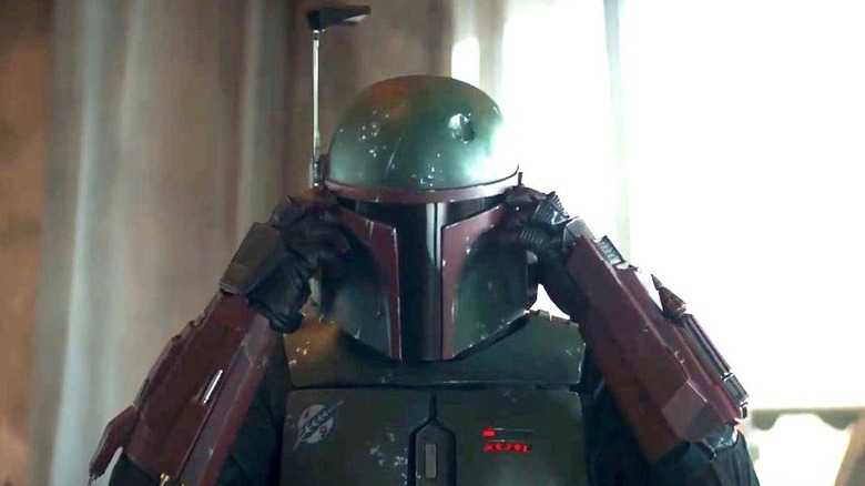 The popularity of this character eventually leads to Disney+ reintroducing Boba Fett in "The Mandalorian" and then giving him his own show, "The Book of Boba Fett." His iconic armor goes through various stages from freshly painted to battle-worn, but in every one of Boba Fett's appearances, he's seen wearing the same color scheme — predominantly green with red trim and gold accents.