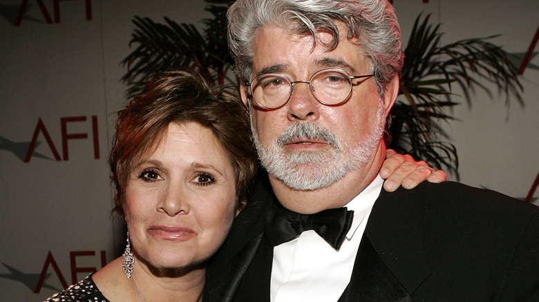 In the episode, fans might have noticed falling space underwear appearing a few times. And no, this doesn't necessarily mean someone hit an interstellar laundromat. While speaking on "This Week In Star Wars," "I Am Your Mother" director Magdalena Osinska revealed that the falling underwear gag referenced Fisher's speech during George Lucas' 2005 AFI Life Achievement Award. While roasting the "Star Wars" creator, during her speech, Fisher humorously brought up the fact that Lucas told her that she couldn't wear a bra while filming the first "Star Wars" film as there was no underwear in space. It's an excellent point Fisher hilariously skews Lucas about during her speech. But it wasn't the only time she mentioned his space underwear ban.