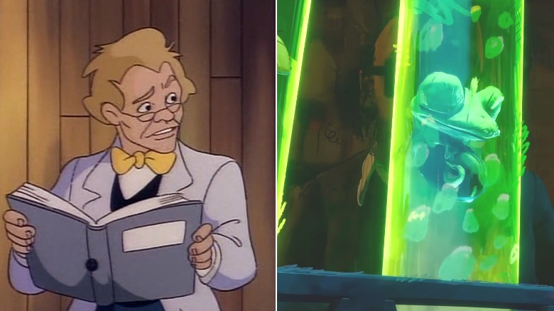 In the 2023 CG-animated feature film "Teenage Mutant Ninja Turtles: Mutant Mayhem," Genghis Frog is voiced by stand-up comedian Hannibal Buress. In the trailer for "Mutant Mayhem," we can see how — like many of the film's re-designs — Genghis Frog's body shape is much more frog-like in nature when compared to his more humanoid '87 cartoon variant. The 2023 CG-animated design is more round, and — like a frog — has almost no upper body to speak of. With bulbous, ranine eyes, a long tongue, and a warty complexion, along with cloth shorts and a brown belt, the character's been completely redesigned. He still has the ax, though, thankfully.