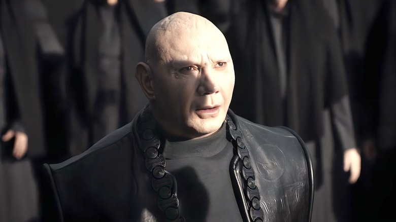 It is a very good time to be Dave Bautista, as the former WWE superstar is carving out one of the more impressive careers in Hollywood. And his A-list status has led to several collaborations with A-list directors, including Denis Villeneuve, whom Bautista first worked with on "Blade Runner 2049." The pair reconnected for the first part of Villeneuve's adaptation of Frank Herbert's epic sci-fi saga "Dune," with Bautista claiming the role of the sadistic Glossu Rabban Harkonnen — a role he will indeed reprise for the upcoming sequel "Dune: Part 2."