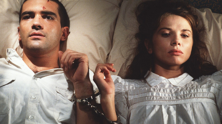 "Tie Me Up! Tie Me Down!" was instrumental in getting Antonio Banderas mainstream attention in Hollywood. While he'd begun to pick up notices in the American press for his appearance in Pedro Almodóvar's previous film, "Women on the Verge of a Nervous Breakdown," it was "Tie Me Up! Tie Me Down!" that exposed him to international fame. Almodóvar, who cast Banderas in his first film after seeing him in a stage play, also placed Banderas in two of his previous movies. The collaborators and cohorts would watch their careers blossom in tandem.
