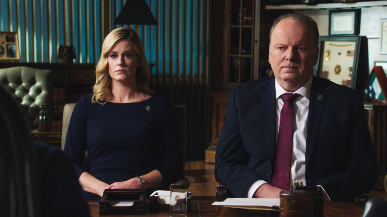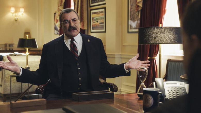 There are a lot of big names that have come through the revolving door of recurring and guest actors on "Blue Bloods." Everyone from Whoopi Goldberg and Ed Asner to Lou Diamond Phillips and Treat Williams have lent their presence, but for Abigail Hawk, there is one person that she works with who casts a more immense shadow than all of them. And you likely know who that is because he is the biggest name in the cast. She told Pop Culture what it is like to work alongside Tom Selleck.