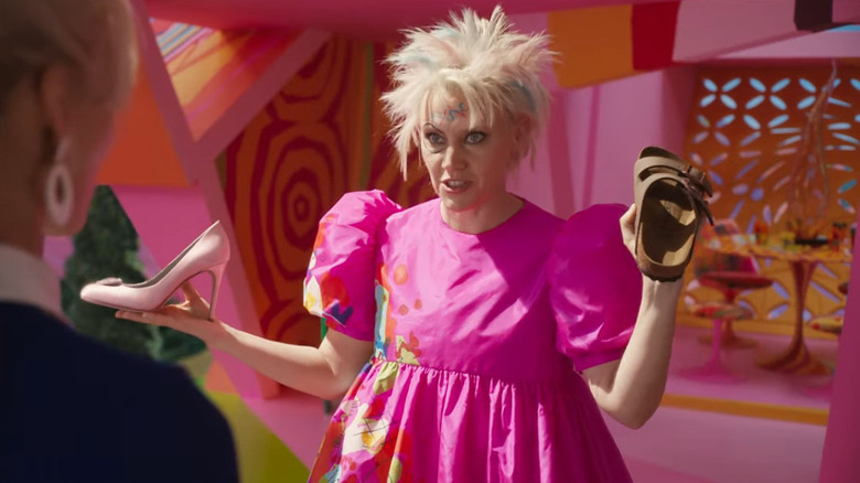 Well, she gives Stereotypical Barbie a choice — either go and fix it, or pretend everything is fine and hope her problems just go away. This choice is presented to her in a hilarious homage to the red pill vs. blue pill scene from "The Matrix," only the options, in this case, are represented by either a pink high-heeled shoe or a Birkenstock sandal. On first viewing, it just seems like a funny way to represent the two worlds, but the ending gives it all a whole new context. When Barbie finally does choose to become a human woman and we see her in the real world in the final scene, she's wearing a pair of Birkenstocks — which means the choice that was previously offered to her was a much more literal one that we realized at the time.