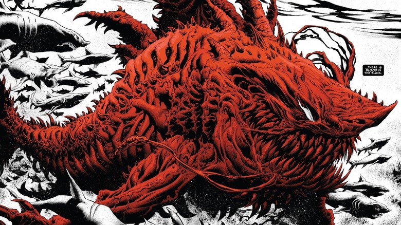While Venom destroyed Cletus Kasady's body, his consciousness endured in the symbiotes' hivemind. In 2020's "King in Black," the symbiote god Knull brutally murdered the powerful superhero Sentry in the miniseries' first issue. Bonded to a shark to create one of the scariest looking things you'll ever see underwater, Carnage wants to get in on the action, but in 2021's "Carnage: Black, White and Blood" #2 we find out why Carnage is a no-show for the event.