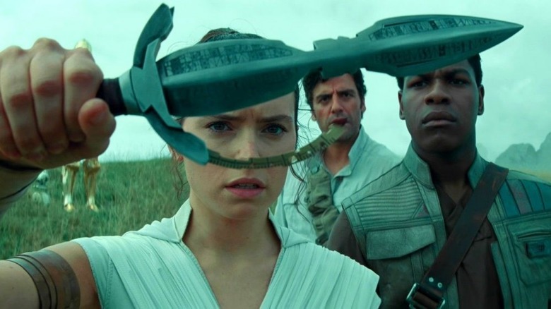 "Star Wars: Episode IX — The Rise of Skywalker" has plenty of controversial moments and multiple overarching worst things in the movie. Even in this overabundance of oddities, the bizarre "Skywalker Saga" moment where Rey (Daisy Ridley) uses the Sith blade that killed her parents to locate a wayfinder ranks among the strangest scenes in the film. By comparing the weapon's shape to the wreck of the second Death Star and using a hidden measurement tool, Rey manages to track down the right location, and the viewer is left wondering what the odds must be for her to stand in the exact right place to pull such a stunt.
