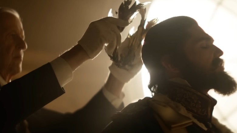 "Rebel Moon" is clearly all about getting the gang together and finding out how the various characters all decide to fight the power of the Imperium. We do, however, get to see at least some royal activity, and the trailer shows us a brief glimpse of Regent Balisarius (Fra Fee) as a crown is being placed on his head. There are only so many ways to depict a galaxy-tier evil royal, but Regent Balisarius definitely brings to mind Eddie Redmayne's Balem Abrasax from "Jupiter Ascending." It's probably safe to say that Snyder has some unique plans for his contemptible king, but odds that fans will have to wait until the second "Rebel Moon" movie debuts on April 19, 2024, before they really understand what Regent Balisarius is planning for the Imperium.