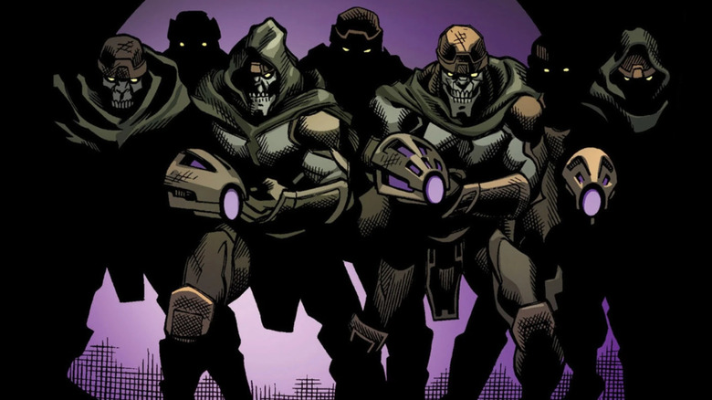 Like all quality henchmen, the Chitauri come in a variety of different — but visually similar because aesthetics are everything — forms. They first entered the Marvel Cinematic Universe back in 2012 when Loki (Tom Hiddleston) needed an army and Hulk (Mark Ruffalo) needed something to smash without cranking up the parental guidance rating. Since "Avengers," the cyborg hivemind goons never really left; they only expanded. 2019's "Avengers: Endgame" unveiled the Chitauri Gorillas, which look and act exactly like you'd imagine. These lumbering goliaths were designed by Jerad S. Marantz, a concept artist who specializes in creatures and costumes.