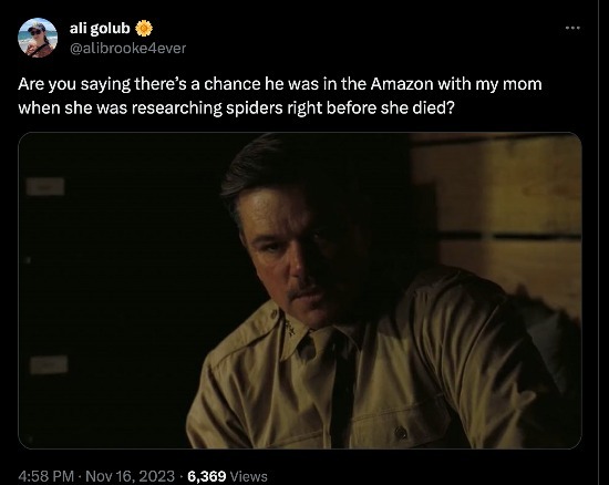 "He was in the Amazon with my mom when she was researching spiders right before she died," Madame Web said, leaving social media in stitches.
