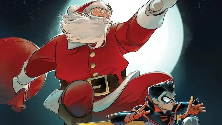 Zatanna and Robin can't believe their eyes seeing Santa as Batman reveals his shared history with a man he refers to as Kris. The Caped Crusader mentions Santa taught him a few things during his years abroad. Damian Wayne is mystified to learn about his dad's connection to a figure he says he doesn't believe in, despite him standing right in front of him. However, before full introductions can be made, the quartet is called into action.