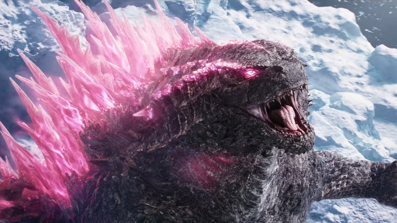 Within the nearly seven-decade-old film series, Godzilla has donned pink spines and even atomic powers on a handful of occasions. The first major instance was for "Godzilla 2000" and "Godzilla vs. Megaguirus," the first two installments of the Millennium era of the early 2000s. Despite each movie taking place in a separate continuity, they each make use of the same Godzilla suit known as MireGoji. While the dorsal spines are mainly dark grey, they are notable for the bold purplish-pink highlights on the edge of the spines that don't seem too far off from Godzilla's design in "The New Empire."