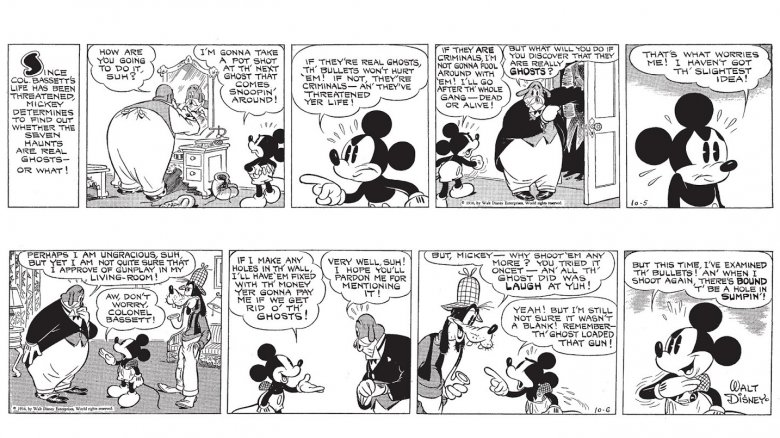 Here's why all of this is so important. Mickey had no shortage of appearances on the movie screen — after his 1929 debut, he'd starred in 50 shorts by the end of 1932. Still, seeing those still required potential fans to pay for a ticket to the movies, something that was getting pretty difficult as the Great Depression wore on, and once they were over, all you had was the memory unless you wanted to pay to see them again. Newspapers, on the other hand, were a true mass medium with an established (and massive) distribution among the public. There was a cost for entry, of course, but for all their popularity with readers, comics were almost a bonus feature added to the primary purpose of, you know, news. If you're already paying a dime to find out, say, what's happening in Europe in the '30s, which was kind of a big deal, then the comics that you get along with it are an afterthought.