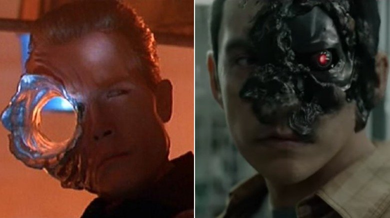The reference, though, is twofold. You may recall that in Terminator 2, the T-1000 suffered an injury of a similar sort (although it was the result of a shotgun blast rather than an ax to the face), which quickly self-healed. Luna's Terminator apparently has the exact same capability, as its horrific injury proves to be quite temporary. It's an ingenious visual callback to the only two movies that Dark Fate counts as canon, not to mention a strong indication that this new Terminator is going to represent, shall we say, the worst of both worlds — with the wily shape-shifting capability of the T-1000 and a near-indestructible chassis, just like the classic T-800. It's safe to say that, once again, Sarah Connor has her work cut out for her in her bid to preserve the future of humanity — but somehow, we have a feeling she can handle it.