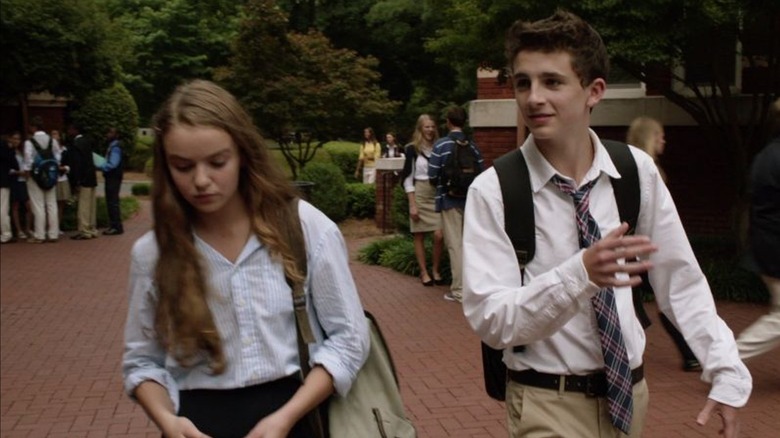 Just like his sister, Chalamet studied at LaGuardia High School. Chalamet admitted that he had been expecting something different when he first enrolled. "I had an idea that it was like grid-style rows in a classroom, learning about drama," he told Deadline. Instead, it was a much more immersive experience, where Chalamet often found himself on the stage. Performing in the off-Broadway production of "Talls" at age 15 (which conveniently fell on school break so he wouldn't need to miss any classes) cemented his decision to pursue acting as a serious career path.