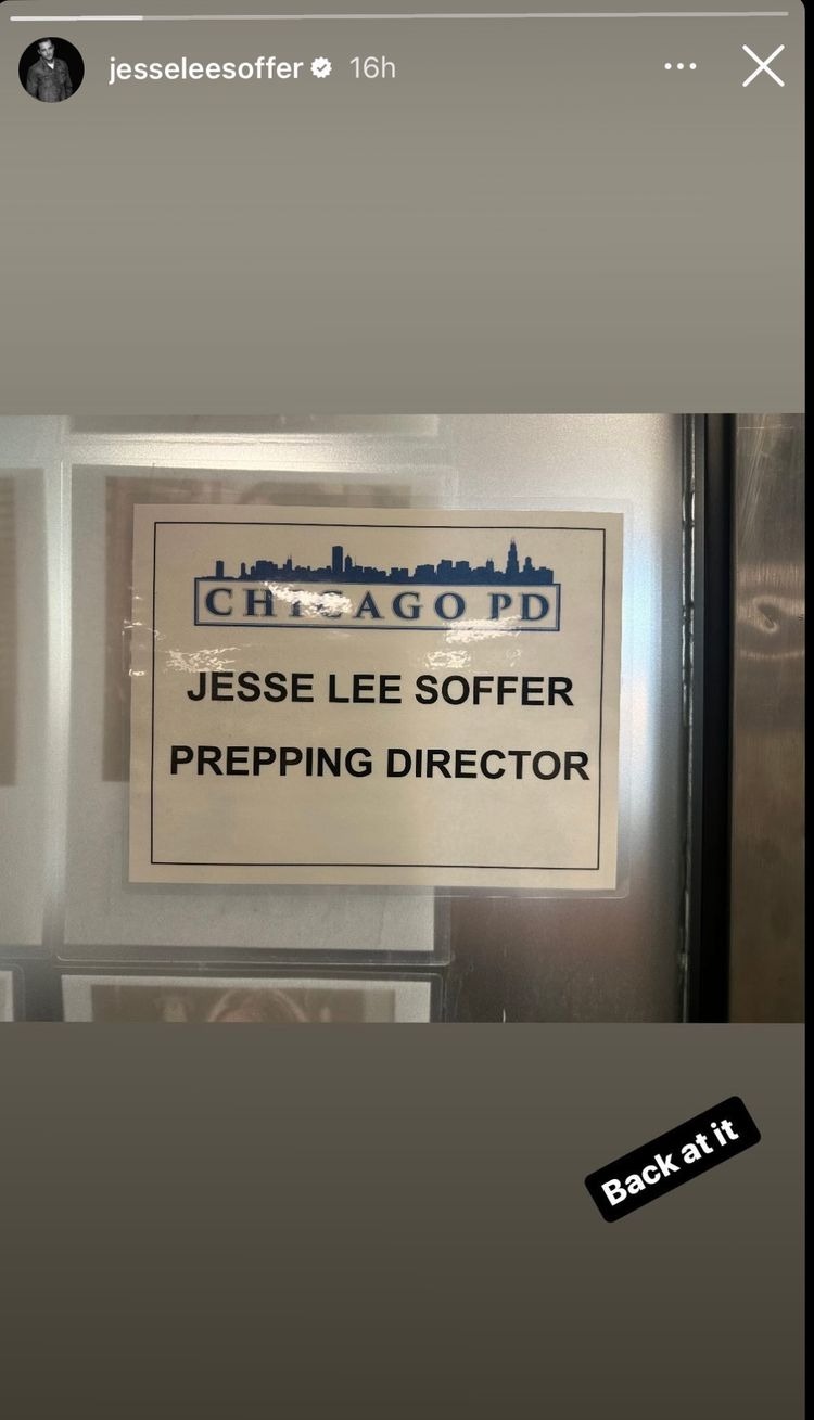 According to a story posted to the actor's Instagram account, Soffer will direct an upcoming episode of "Chicago P.D." On March 25, he posted an image of his dressing room on the set, which bears a sign reading, "Jesse Lee Sofer: prepping director."