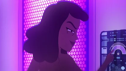 This feature is pushed to its limit in the "Star Trek: Lower Decks" episode "Kayshon, His Eyes Open." Unlike the ship's higher-ranking officers, the lower deckers on the Cerritos, who sleep in bunks rather than private quarters, use unisex communal sonic showers located near their barracks-style corridors housing the ensigns, Starfleet's lowest-ranking junior officers. Like M'Benga's and Torres' showers, the large communal shower features pulsing light walls along with translucent, waist-high dividers that seem to function more as something for hanging towels on than to provide privacy. As self-assigned "unofficial leader" of Beta shift, Ensign Mariner (Tawny Newsome) attempts to exert her authority over the newly-assigned Jet, and the two ensigns take turns competitively cranking up the sonic frequency via their shared LCARS panel. The buzzing intensifies, causing the other panicked ensigns to grab their ears and flee before Mariner and Jet's noses begin to bleed from the sonic pulses.