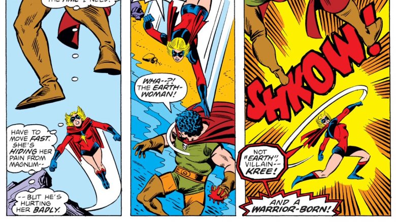 In 1977's Ms. Marvel #11, the titular hero (better known these days as Captain Marvel) is assaulted while flying over the remote Caribbean island of Saracen Cay. Like N'Kantu, she's first attacked by warrior drones shaped from stone. After defeating them, she's blasted by fire and batted around by giant fists made from seawater. The final page reveals the Elementals, minus Zephyr, joined by the witch Titan Hecate.