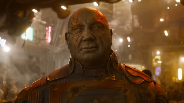 Talking with GQ, Bautista elaborated a bit more on his decision saying, "I'm so grateful for Drax. I love him. But there's a relief [that it's over]. It wasn't all pleasant. It was hard playing that role. The makeup process was beating me down. And I just don't know if I want Drax to be my legacy — it's a silly performance, and I want to do more dramatic stuff." In fairness, we think Bautista is being a bit hard on himself. He's awesome as Drax. However, we can't wait to see what the wrestler turned legit thespian does next, as he's proven he's got serious range with roles in films like "Glass Onion," "Blade Runner 2049," and yes, the "Guardians" movies.