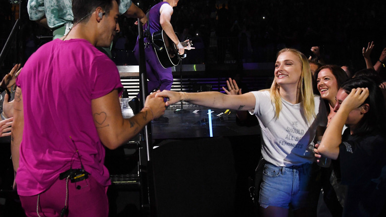 As it turns out, being married to a world-famous pop star isn't all it's cracked up to be. Sophie Turner's relationship with Joe Jonas was tabloid fodder well before "Game of Thrones" ended, but as the years passed, it began to overshadow her work as an actor. Turner was often seen attending Jonas Brothers concerts throughout the relationship, even less than a month before the marriage ended, sparking headlines for her outfits and dancing.