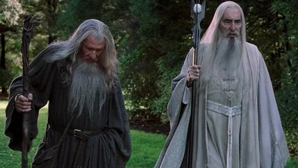 That's right. The wayward Wizard has magic rings. How do we know this? From a pair of lines in the "Fellowship of the Ring" book. When Gandalf first arrives at Saruman's fortress of Isengard, he greets his fellow Wizard, and the text says, "He wore a ring on his finger." Shortly after his arrival, Saruman also refers to himself, saying, "For I am Saruman the Wise, Saruman Ring-maker, Saruman of Many Colours!" See that reference to ring-making? Combine it with the specific Tolkien call-out to the ring on his finger, and there's no doubt that Saruman has forged his own Rings of Power at this point in the story.