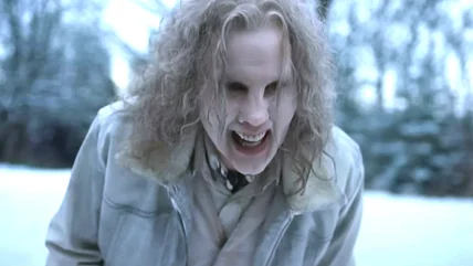 "Longlegs" opens in the 1970s as a station wagon approaches a white house in a snowy landscape. A young girl (Lauren Acala) spots the vehicle, grabs a Polaroid camera, and ventures outside, following a strange voice to an even stranger man (Nicolas Cage), whose face isn't entirely visible to the camera. Speaking in a strange, sing-song manner, he congratulates the girl on her approaching birthday and makes an odd comment about wearing his long legs today. The entire sequence is peppered with eerie sound design and liberal jump scare chords, but just as the man starts asking a question and crouches down to provide a closer look at his face, the camera cuts to the 1990s.
