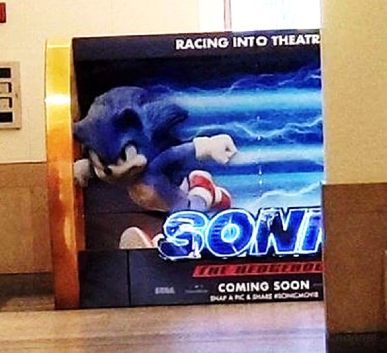 A Twitter user has posted a picture of a standee for the upcoming film Sonic the Hedgehog that appears to confirm that recently leaked images of the title character's redesigned look were genuine. (via ComicBookMovie)