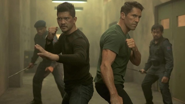 Well, Iko Uwais, who previously starred in and did action choreography for 2017's "Beyond Skyline," returns as Sua, the leader of the underground human resistance. In addition to fighting aliens, Sua will also trade blows with the human villain Eric, played by martial arts action favorite Scott Adkins. Writer/director Liam O'Donnell has been hyping the film up big time, telling Deadline: "As crazy as it sounds, we see this as our own niche version of a 'Fast Five'/'Avengers' type of sequel where we are bringing together the characters from previous installments into a bigger, crowd-pleasing sci-fi martial arts adventure."