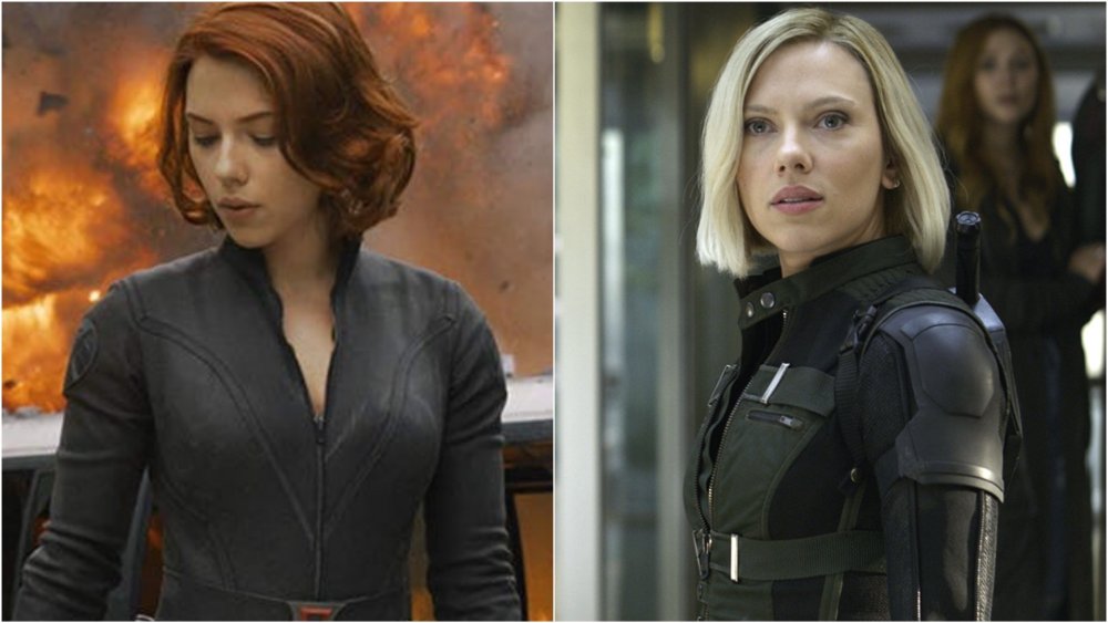 So far, Marvel hasn't exactly been adventurous when it comes to Black Widow's look in the MCU. Just about the only part of her appearance to change has been her hair, which has gone through a few different styles and colors — most notably when she went from redheaded to blonde after the events of "Captain America: Civil War," which put her at odds with the United States government and made her a fugitive along with the rest of Cap's crew. Although she's been known to wear office attire or even an evening gown when she's under cover or on assignment, her battle suits throughout the first decade of the franchise have pretty much all been basically black. However, that changes with the "Black Widow" movie, which gives her a brand new outfit and pulls back the curtain on Natasha's mysterious past prior to joining up with the Avengers.