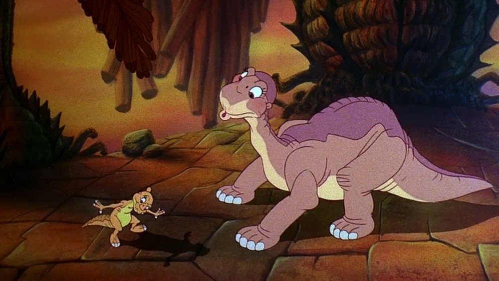 Most children don't pay much attention to who's creating the films they love. But for decades, Don Bluth had a hand in a great deal of the most beloved animated movies, from his work with Disney starting in 1959 right up through to today — he's currently working on Dragon's Lair: The Movie, despite the fact that he's in his 80s. Today's adults can look back fondly on films like The Secret of NIMH, An American Tail, and All Dogs Go To Heaven, but modern kids are unlikely to recognize these titles as readily, and probably wouldn't necessarily recognize that they were all directed by the same person. The Land Before Time is another on this list of animated classics, and Bluth isn't the only impressive name on its pedigree. The film's executive producers were George Lucas and Steven Spielberg, Hollywood elites who had already collaborated on fan-favorite franchises like Star Wars and Indiana Jones. All three of these men are meaningful figures to anyone over a certain age, but the juice box crowd just cares about how Littlefoot and his friends are going to make it to the Great Valley.