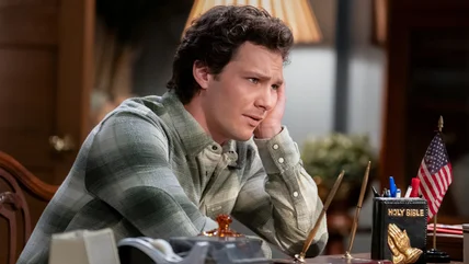 Future Dr. Tire proprietor Georgie Cooper (Montana Jordan) isn't necessarily known for his brain power, but the scheme he comes up with in "Dirty Hands and a Barbed-Wire Fence" takes the cake. It also endangers his forever-imperiled marriage to Mandy (Emily Osment) once again, thanks to a stupid — and major — misunderstanding. Determined to outwit his inherited enemy, Fred Fagenbacher (Matt Letscher), who has begun to do favors for Georgie's regular customers to win their business, Georgie decides to team up with Ruben (Jessie Prez) to pour bleach into the gas tanks of Fagenbacher's trucks.