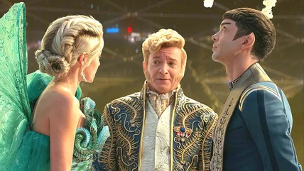 A Boltzmann brain is a cosmological and philosophical thought experiment that proposes an infinite, chaotic, and fluctuating universe. It would be more likely for a singular sentient non-corporeal brain to randomly emerge and hallucinate an entire reality than for the universe as a whole in all its complex glory to arise. In the "Star Trek: Strange New Worlds" episode "The Elysian Kingdom," the Enterprise encounters such a being, or at least one very similar to it, in Debra, a nebula-dwelling disembodied alien consciousness who traps the crew in a fairytale reality.