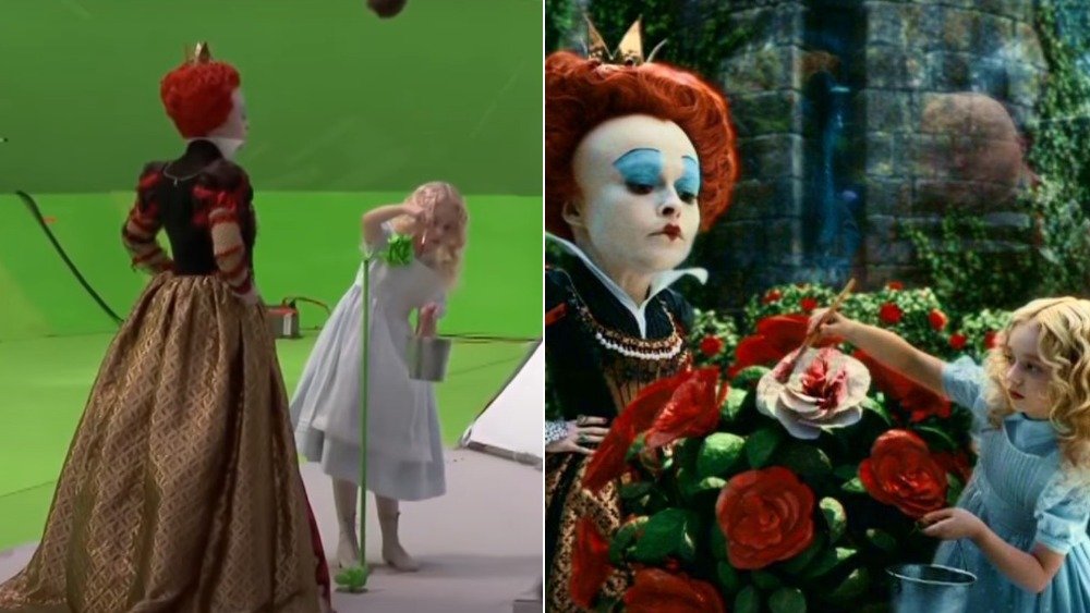 Villegas revealed that the Red Queen's greenscreen segments were "probably some of the trickiest" of his entire career — and they weren't exactly a walk in the park for the actor, either. Bonham Carter told Rotten Tomatoes that she wasn't allowed to put her hand on or anywhere near her face, or it would end up distorted when they enlarged her head in the editing suite. She also lost her voice from all the shouting her character does, but she admits that the "green people" running around are the ones deserving of praise. "They're the unsung heroes, all the actors who won't ever be seen or heard, frankly, because we had a legion of actors in green leotards reading for the other characters," the two-time Oscar nominee said. "And they're brilliant. We couldn't do it without them."