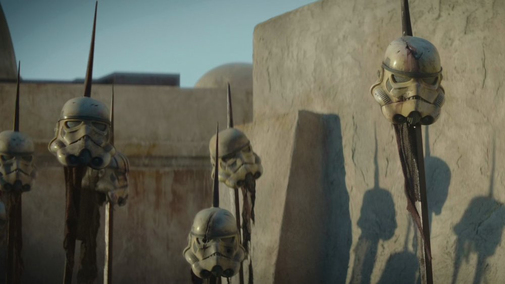 The Mandalorian episode "Chapter 5 – The Gunslinger" is set the following year, and sees the titular hero visit Mos Eisley, where one street is lined with Stormtrooper helmets skewered on pikes, indicating a bloody victory over the remaining occupying Imperials. But apart from the new decor, it's business as usual for the old wretched hive, with smugglers and bounty hunters aplenty trying to eke out a marginally honest living on the outskirts of the galaxy.