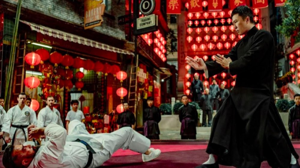 The Los Angeles Times wasn't alone in its praise of the film, which ended up scoring a 96 percent rating on the Tomatometer, an incredible feat for a kung fu movie. The film covers Ip Man's exit from Japanese-controlled Foshan with his family and their arrival in Hong Kong, a British colony at the time. It has definite Rocky IV vibes — when Hung is killed in the ring by a British boxer, it's up to Ip Man to defend his kung fu and his culture.