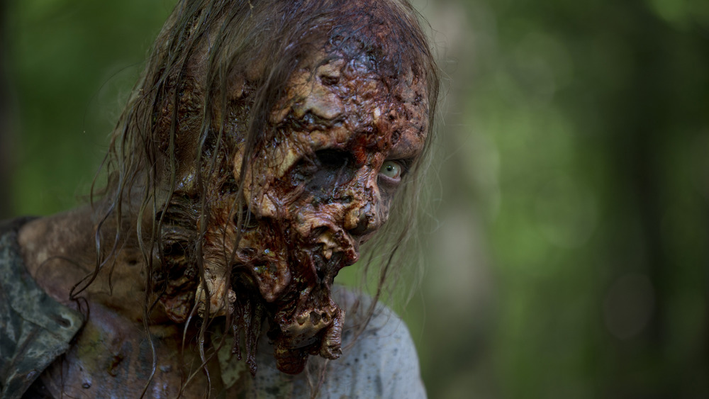 In terms of specifics, there's one thing Nicotero and Towery definitely didn't want from their zombies: A stance they refer to as "Frankenstein," meaning arms stuck straight out ahead of you. Nicotero explained to Vulture, "if we have someone in the background who's walking like Frankenstein, that doesn't look to portray the rules that we have built in our show." Nicotero also had a particular look in mind, according to his interview with CNN. "We tend to go with thinner people who have a specific kind of bone structure, so when we put prosthetic on them... it doesn't look like we're building out their face too much."