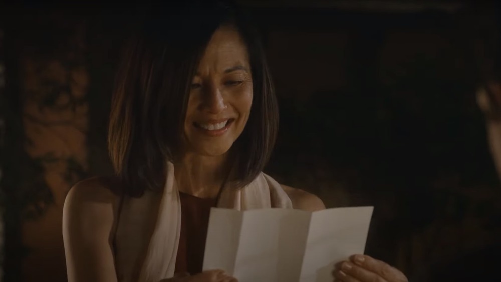 The scene in question takes place in Okinawa, with Daniel LaRusso (Ralph Macchio) returning to Japan in the wake of the events of season 2. There, he catches back up with Kumiko (Tamlyn Tomita), Daniel's love interest from Karate Kid Part II and niece of Mister Miyagi's old flame. The two read Miyagi's last letter together.