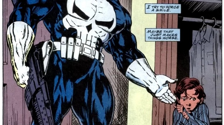 We've explained why Frank Castle doesn't keep friends and is often on the move to stay ahead of the law and his enemies, but somehow he still manages to find a little time for romance — or more accurately, some physical activities without attachment. It isn't often the case that Punisher finds someone he's compatible with on that level — because usually, they need to be just as damaged as him or quite desperate — but there are characters who admit being attracted to him, usually in a blunt manner. The number of women he winds up sleeping with might be surprising, but like his foes, a good number of them wind up dead. Yet he did end up having a child with Kathryn O'Brien, a recurring romantic partner from the Garth Ennis run.